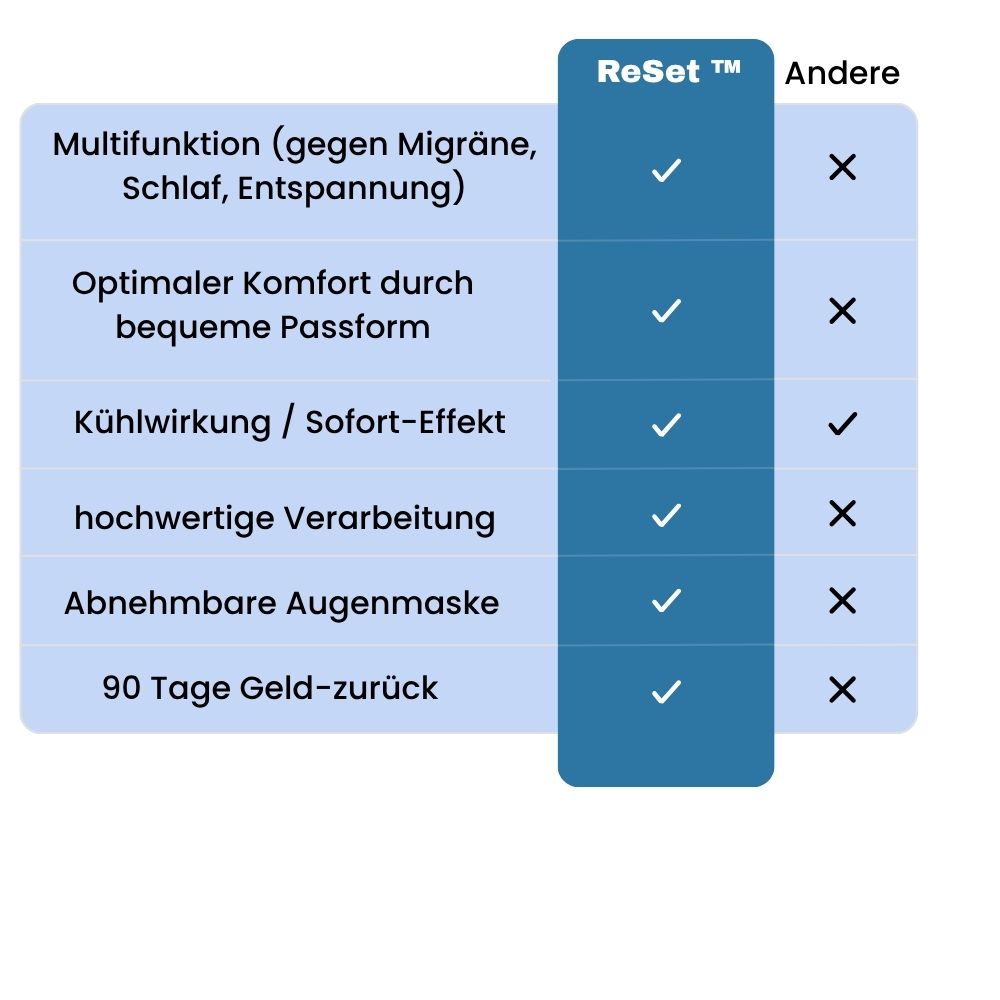 Dank ihres flexiblen Designs passt sich die Maske angenehm an deinen Kopf an und bleibt sicher an Ort und Stelle – egal, ob du dich ausruhst oder nebenbei etwas erledigst. Durch die abnehmbare Augenpartie kannst du zudem auch einen Film schauen, kochen oder arbeiten, während die ReSet™-Maske ihre Wirkung frei entfaltet.