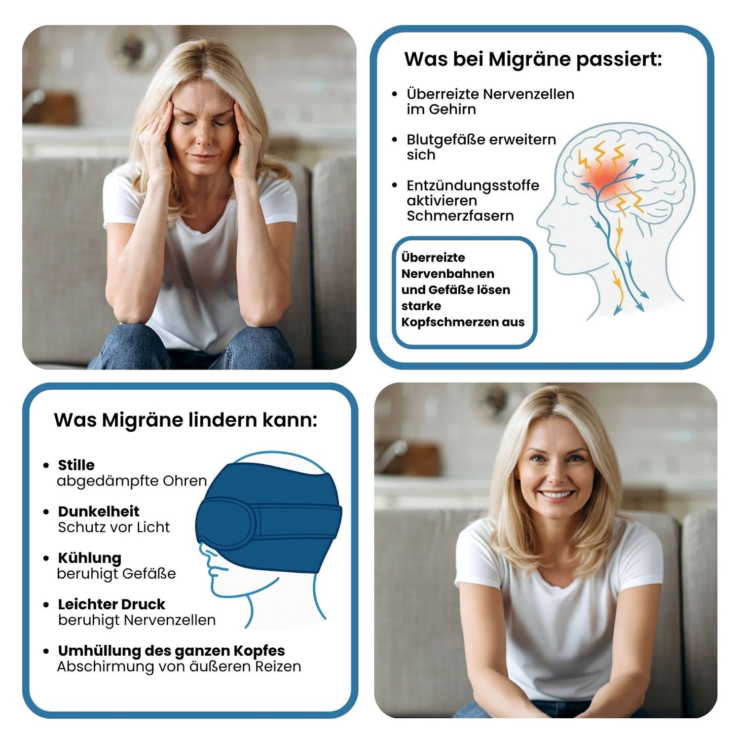 Wohltuende Entlastung bei Migräne, Kopfdruck & Lichtempfindlichkeit - durch Kühlung, Dunkelheit & Flexibilität